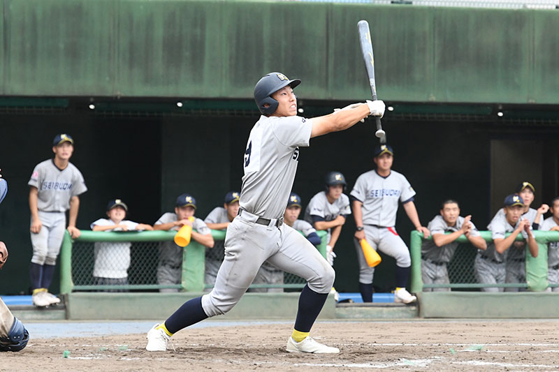 西武台はBシード春日部共栄に4―3で逆転勝ちした。1―3の九回1死満塁に代打金谷の適時二塁打で同点とし、なお1死二、三塁で横内のスクイズで勝ち越した。