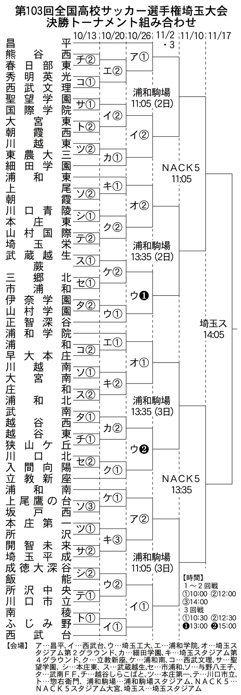 • 全国高校選手権埼玉大会決勝トーナメントの組み合わせ