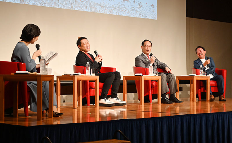 大野知事は渋沢栄一の「道徳経済合一説」の理念が現代の持続可能な開発目標(SDGs)の考え方につながっていると説明。「渋沢栄一創業プロジェクト」などの支援事業を通じて「人材育成や若手経営者の創業支援につなげたい」と話した。県外在住の武内監督は観光客を取り込む秘策として「翔んで埼玉空港」の設立を提案した。はなわさんは「海外にも人気のアニメの聖地巡礼をもっと推すべき」と県民が見落としがちな魅力が武器になると訴えた。
