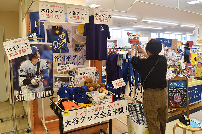 埼玉からも優勝を祝福 大谷選手のグッズ全品半額 きょうから熊谷の店舗 「数量限定でなくなり次第終了」 愛犬デコピンのグッズも 2024/11/01/10:12 大谷翔平選手と愛犬デコピンのグッズを全品半額で販売するコーナー=10月31日午後、熊谷市筑波 この写真の記事に戻る