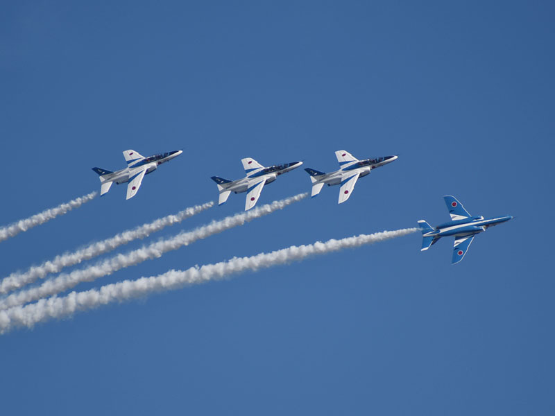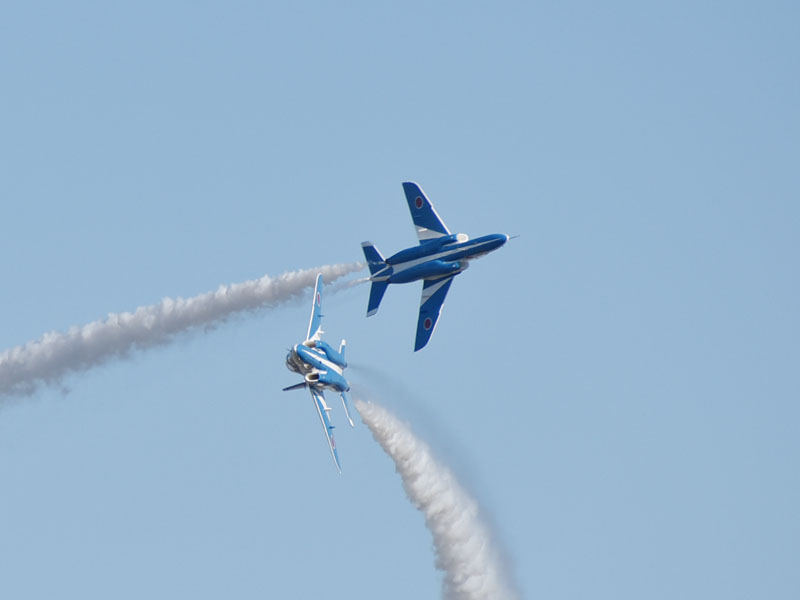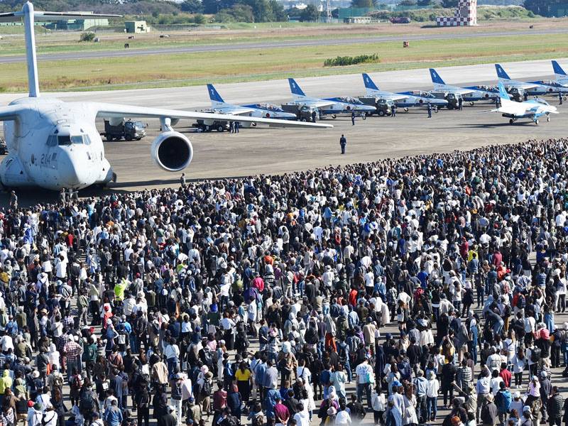 青空に舞うブルーインパルス 背面飛行や垂直上昇、急旋回などの曲技披露し歓声 空自・入間基地で航空祭 5年ぶりの一般公開に25万人