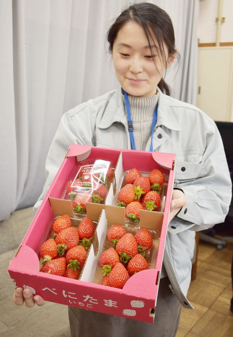 県のイチゴ生産は1963年に作付面積が全国1位だったが、生産者の高齢化や生産の難しさなどから担い手不足に陥った。現在は、都内からの集客が期待できる立地を生かした観光農園の参入が増えており、同課は「県産品種とニーズがマッチすれば、新しい潮流となるのでは」と期待を寄せる。べにたまは3、4年ほどで品種登録され、その後25年は県内限定で生産される見通し。