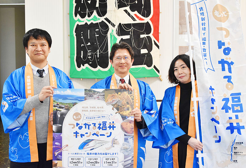 福井のかにや日本酒などグルメ並ぶ 大宮駅前の「まるまるひがしにほん」でイベント 来月5日から15日まで 産地直送の「越前がに」限定入荷も 2024/11/29/10:49 福井県をPRする同県東京事務所の萩原雅広所長(中央)ら=28日午後、埼玉新聞社 この写真の記事に戻る