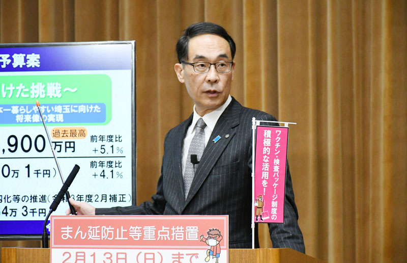 22年度当初予算は「直面する危機からの脱却」「日本一暮らしやすい埼玉に向けた将来像の実現」に最優先に取り組み、限りある財源を重点的に配分する。コロナ対策では検査・医療提供体制の確保に引き続き注力するほか、ワクチン接種の推進や感染症専門人材の育成などに取り組む。