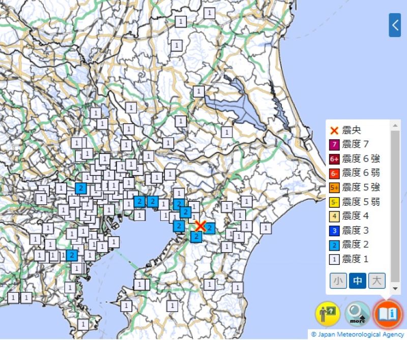 【速報】千葉県北西部で地震 マグニチュード4 最大震度2 埼玉は震度1 首都圏で連続発生 2024/12/08/08:15 8日午前7時39分に発生した地震の震度分布(気象庁HPから) 各地の詳細な震度分布(気象著HPから) この写真の記事に戻る