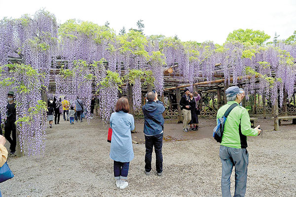 見頃を迎えた春日部「牛島の藤」 国の特別天然記念物、樹齢1200年余り 2メートルの花房も 2019/05/03/00:00 季節・自然 春日部市 写真を撮りフジを楽しむ来園者=1日午後、春日部市牛島の藤花園 国の特別天然記念物で春日部市牛島、藤花園の「牛島の藤」が見頃を迎えている。 「牛島の藤」は樹齢1200年余り、藤棚の面積は700平方メートル、花房は長いもので2メートルにも及ぶ。「藤花園」は6日まで。東武野田線(アーバンパークライン)「藤の牛島駅」から徒歩約10分。有料(大人千円)。 問い合わせは、藤花園(電話048・752・2012)へ。 ツイート シェア シェア まちの話題の記事一覧 埼玉新聞のHOMEに戻る