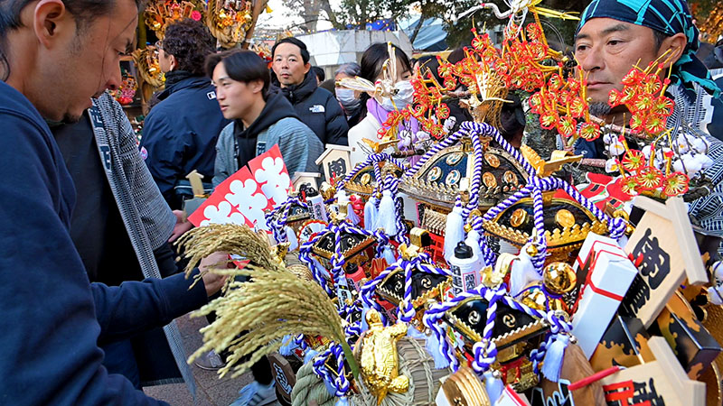 【動画】年の瀬告げる掛け声と拍手 浦和の調神社で「十二日まち」 来年の干支のヘビ、金運が上がるといわれ熊手の装飾に 縁起物求める多くの来場客でにぎわい