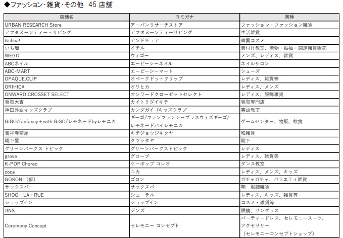 今回は約100店舗のうち、71店舗(ファッション・雑貨・その他45店舗、スーパー・食物販22店舗、フードコート4店舗)を先行発表。また、来年2月に店舗求人サイトを開設し、従業員の採用支援を開始する予定。