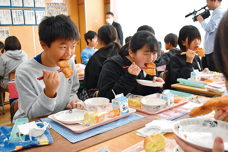 大人気!給食にファミチキ「最初で最後かも」「あり得ないメニュー」 埼玉・狭山の小中学校 ファミマの1号店があった縁で1万個超を提供 笑顔でがぶり、おかわり巡ってじゃんけん大会も 2024/12/22/09:00 ファミチキを頬張る児童ら=20日、狭山市鵜ノ木 ファミチキが提供された給食メニュー この写真の記事に戻る