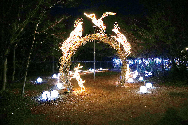 シンボルロードの南口広場には高さ5メートルのアニマルゲートが設置され、LEDで装飾されたウサギやリス、ハクチョウなどが出迎えてくれる。同ロード内は竹で作れられたたまごのオブジェ「森のたまご」や大イチョウ、トナカイなど、電飾された樹木や動物たちがきらめいている。