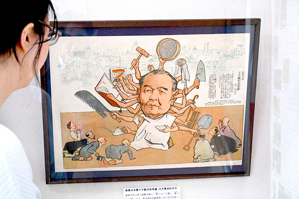 渋沢栄一、ユーモアたっぷりの風刺画に 北沢楽天が描いた作品展示、さいたまの漫画会館で7月まで