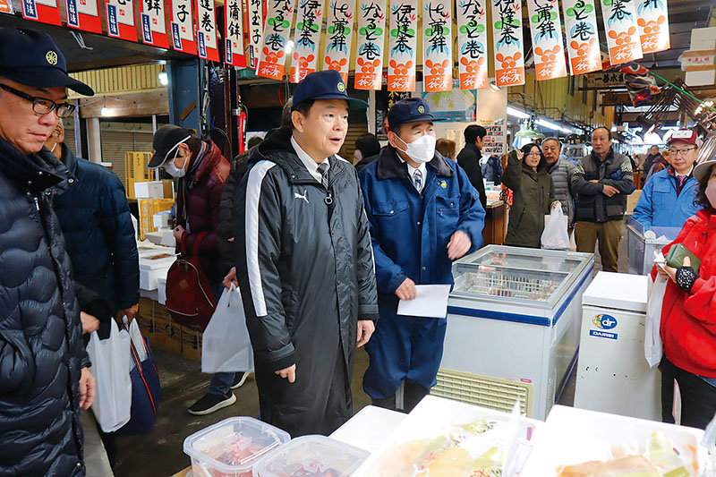 大宮市場、年末恒例の大売り出し始まる 旬を迎えたカニ、マグロなど豊富に 青果類は1・5~2倍の価格 かつてない高騰…ミカンは品薄 清水市長ら視察「お正月に向け、おいしい食材をぜひ」 30日まで 2024/12/28/11:56 年末恒例の大売り出しを視察する清水勇人市長(中央)ら=27日午前、さいたま市北区の大宮市場 この写真の記事に戻る