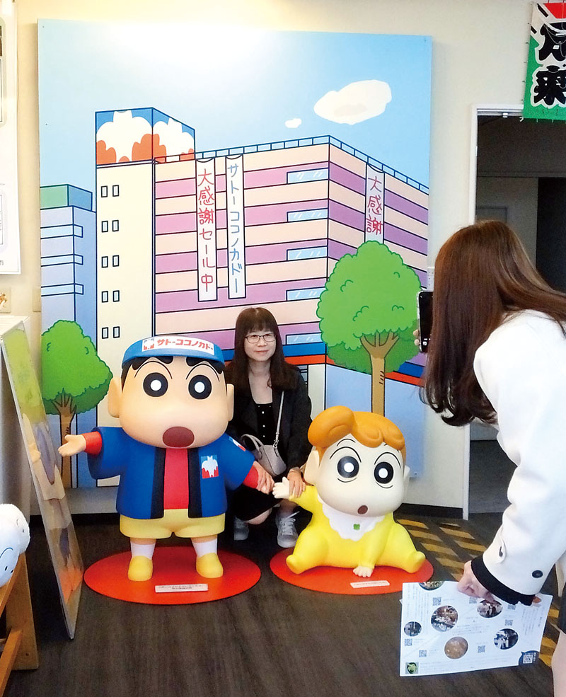 閉店のヨーカドーから移設 「シロ」加わりしんちゃん一家が勢ぞろい 埼玉・春日部市役所 駅前の施設にはサトーココノカドーのパネルも