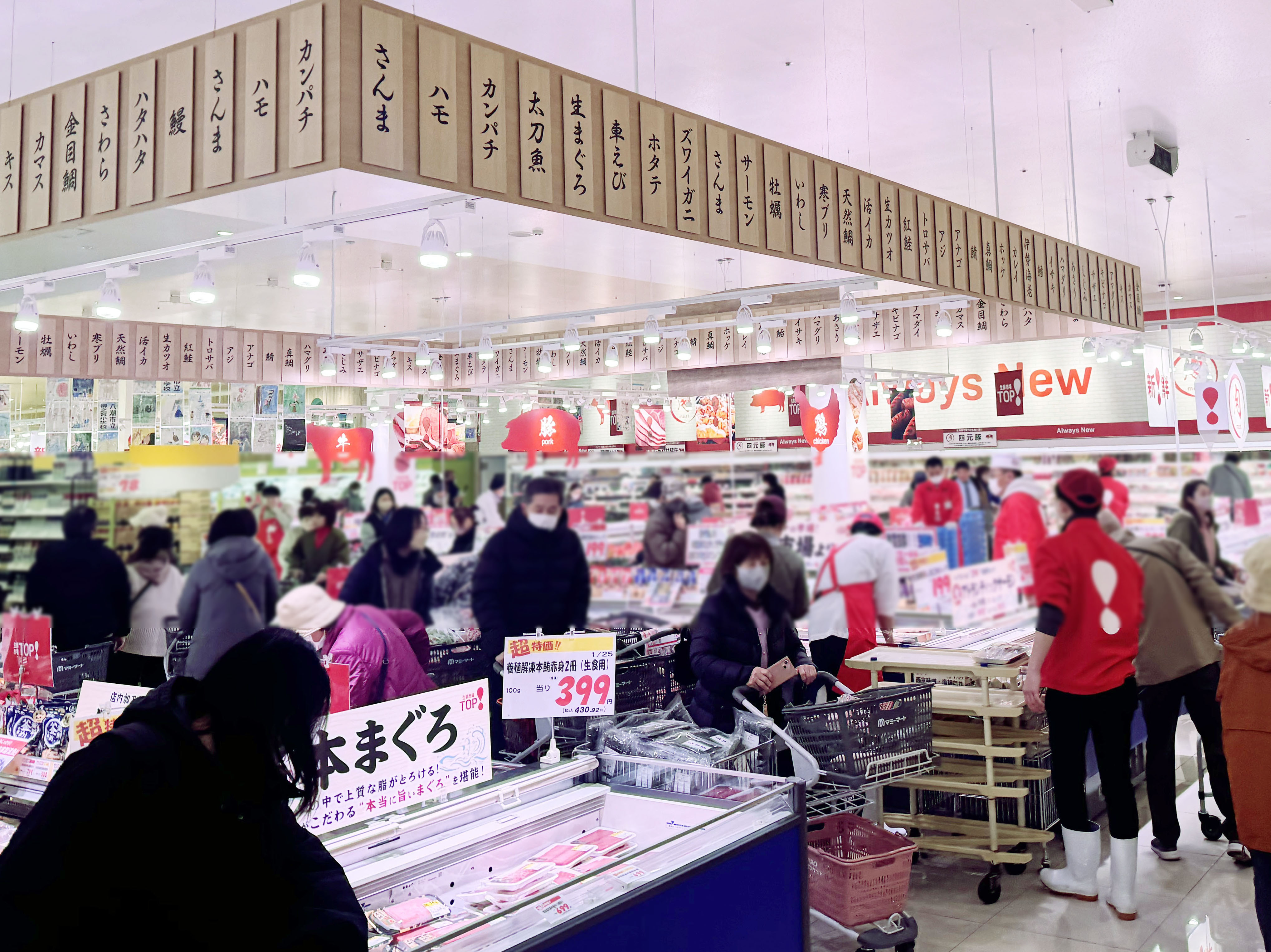 「生鮮市場TOP!八潮伊草店」オープン時の店内のにぎわい(1月25日)