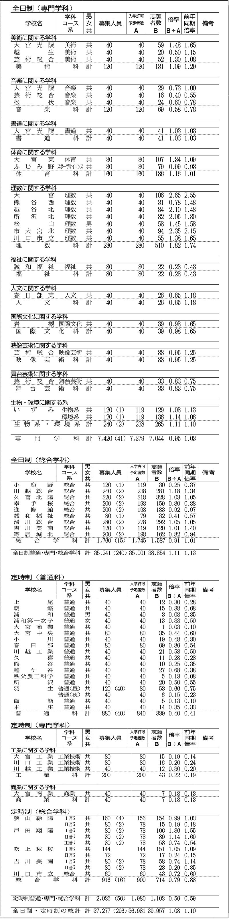 埼玉の公立高 男女別学校の5校が倍率上昇 浦和1・55倍、川越1・54倍など 定員割れは2校 【入学志願状況】