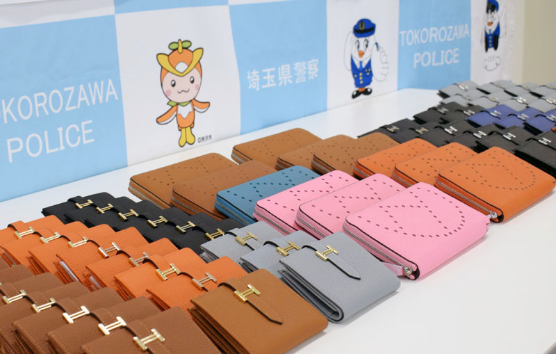 • 押収された偽ブランドの財布=25日午後、所沢署