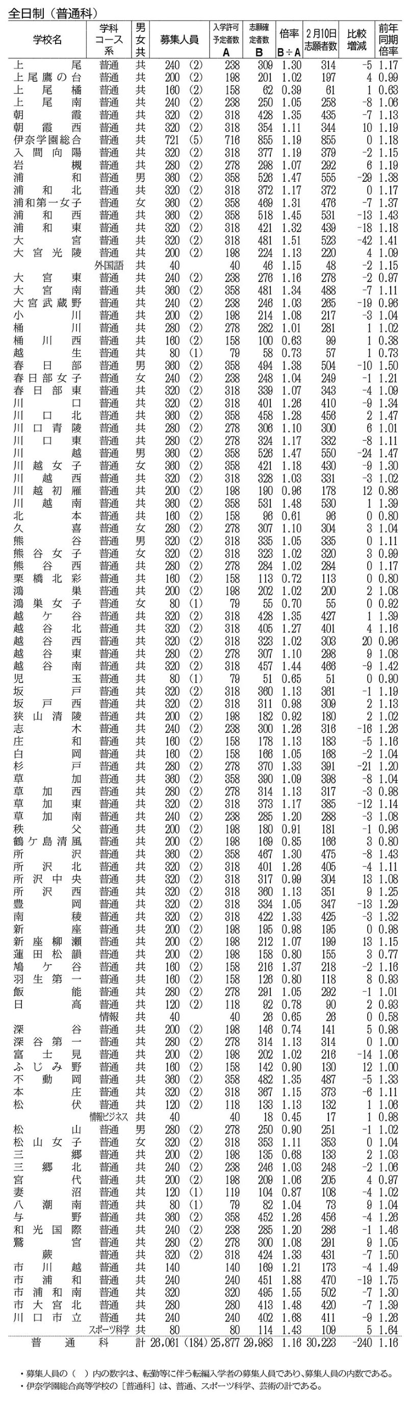 埼玉県公立高校の志願者確定 普通科の最高倍率は市立浦和1・88倍、続いて川口市立1・68倍 専門学科は市立大宮北理数科2・25倍、続いて大宮理数科2・23倍 全日制平均は1・10倍【2025年度高校入試速報】 2025/02/20/20:16 県公立高校入学志願者確定数(その1) 県公立高校入学志願者確定数(その2) 県公立高校入学志願者確定数(その3) この写真の記事に戻る
