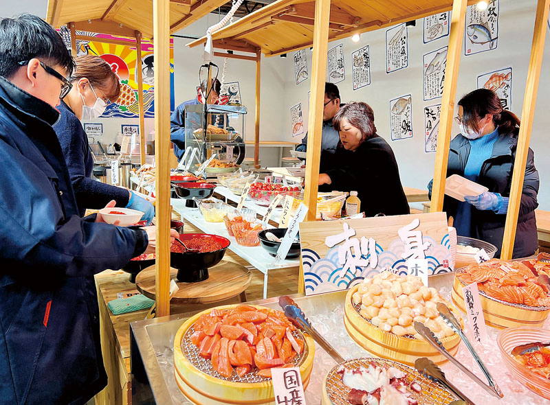 川越市大袋の川越総合地方卸売市場内にある「生鮮漁港川越」は今月から、刺し身の食べ放題を提供する「漁港食堂」をオープンした。