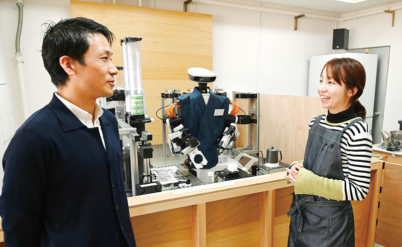 男性客らスマホ片手に興味津々…バリスタはヒト型ロボット、作務衣まといコーヒー提供 全国初!さいたま南区に調理ロボのいるテイクアウト店 もう1台は修行中の「どらやき職人」