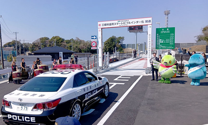 常磐自動車道三郷料金所スマートインターチェンジ(IC)が開通してフルインター化したのに伴い、開通記念式典が22日、三郷市小谷堀、同IC近くの特設会場で開かれた。2023年に開通した三郷流山橋有料道路との相乗効果など、地域の交通利便性の向上が期待されている。
