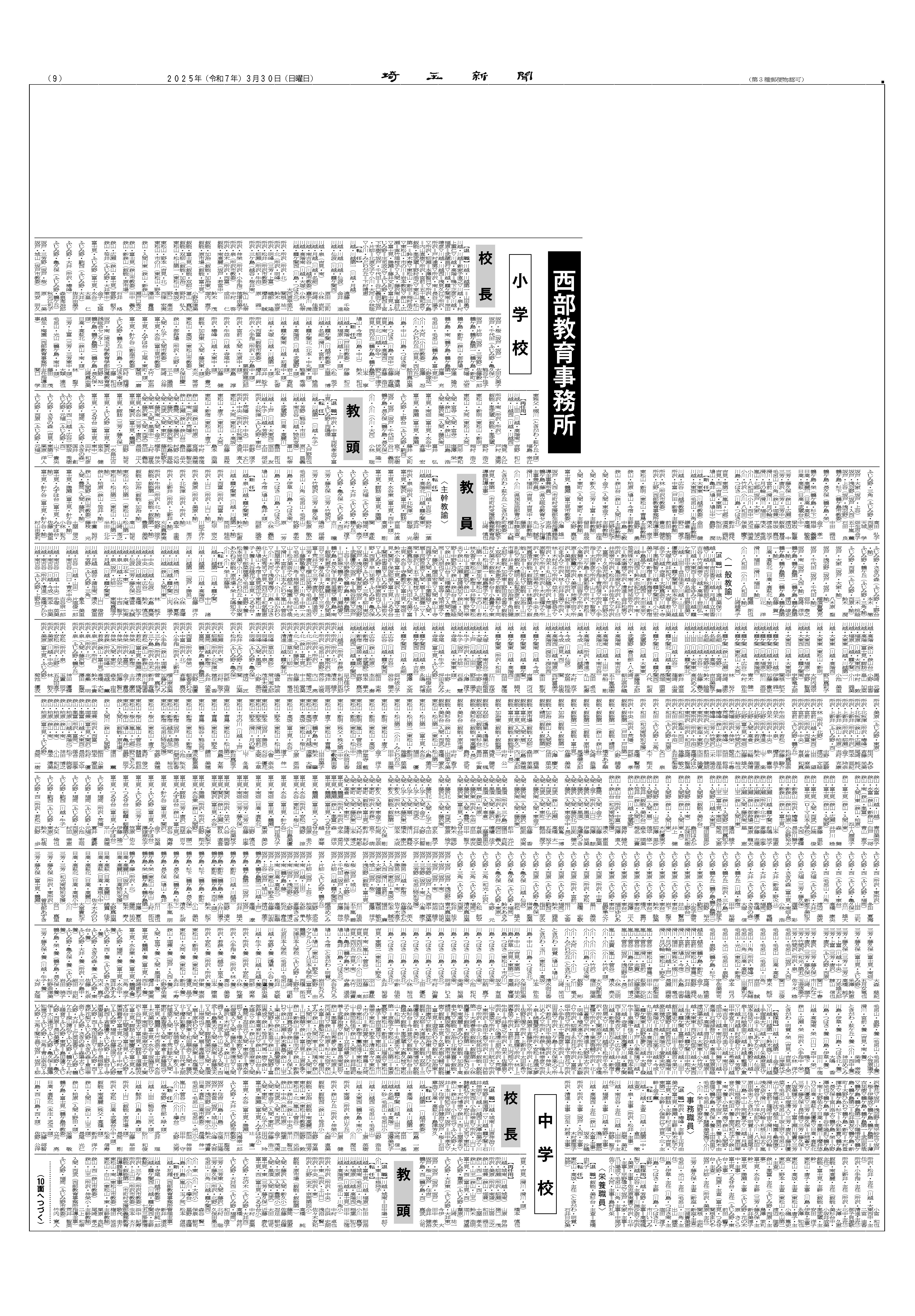 【先生が異動(4)】埼玉県教職員8985人が異動 西部教育事務所(さいたま市を除く)管内の小中学校は 2025/03/30/08:09 西部教育事務所の教職員異動名簿 西部教育事務所の教職員異動名簿 この写真の記事に戻る