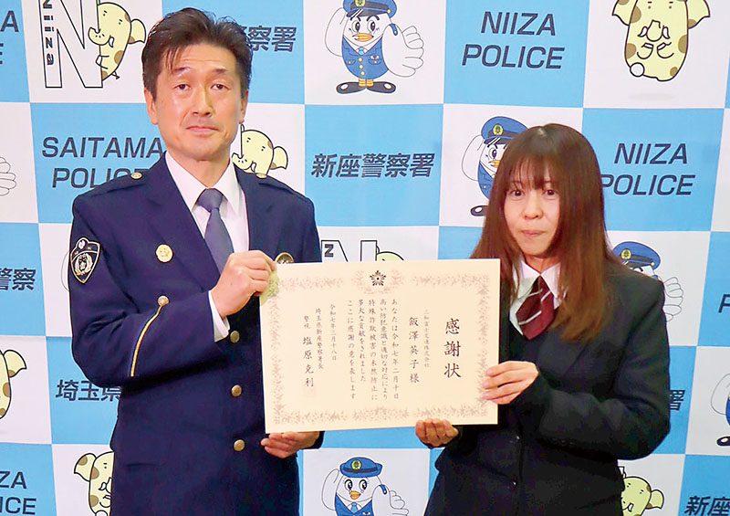 「息子が会社で失敗」と話す母親…自宅前から銀行へタクシー乗車 運転手の女性が必要な金額尋ねると「300万円」 詐欺と確信し、息子へ連絡するよう勧めると詐欺と発覚→交番へ 2025/04/02/08:59 感謝状を贈られた飯沢さん(右) この写真の記事に戻る