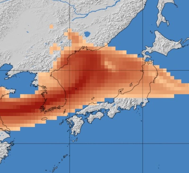 黄砂が週末に飛来か 東日本に【気象現象】 2025/04/17/20:28 速報 気象・災害 地上付近の黄砂の濃度予測(19日午後9時、気象庁HPから) 大気中の黄砂の総量予測(18日午前6時、気象庁HPから) 気象庁の黄砂解析予測図によると、17日夜から、大陸から日本海を超えて流れてくる黄砂の大気中の総量が東日本で高まり、19日から20日かけて地表付近の黄砂の濃度が高まる見込みとなっている。 気象庁によると、黄砂は、東アジアの砂漠域(ゴビ砂漠、タクラマカン砂漠など)や黄土地帯から強風により吹き上げられた多量の砂じん(砂やちり)が、上空の風によって運ばれ、浮遊しつつ降下する現象を指す。日本における黄砂現象は、春に観測されることが多く、時には空が黄褐色に煙ることがあるという。 =埼玉新聞WEB版= ツイート シェア シェア 経済・社会の記事一覧 埼玉新聞のHOMEに戻る