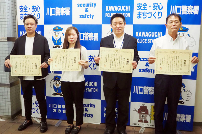 死ぬしかねぇ…バスに乗った刃物男、立ち上がるも周囲の人は気付かず 凶行寸前に乗客の男女が取り押さえる 2022/08/25/00:00 感謝状を受け取った4人。右から野元浩之さん、細川正大さん、小林良紀さん、野口大介さん=23日午後、川口市 この写真の記事に戻る