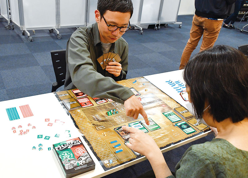 大宮、浦和、それぞれのカードで競う「偏愛伝説カードバトル『さいたま伝』」=23日午後、さいたま市中央区