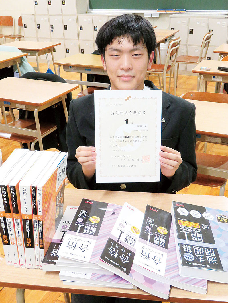 簿記の授業を担当する石崎都幾教諭は、「自分が納得するまで独学で勉強し、黙々と問題を解き続けたのはすごいこと」と賛辞。簿記指導歴30年以上で、高校生の1級取得は初めての経験だそうで「本当に驚いた」と舌を巻く。野口剛志校長も「本校の生徒であることを誇らしく思う。素晴らしい快挙」とたたえた。