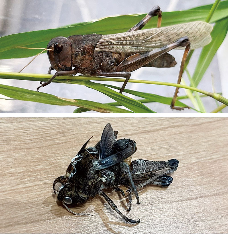 いきものずかんに「3色目」 さいたまの小1、黒いバッタ捕獲「大人になるのを見たい」 昨年はピンクと白
