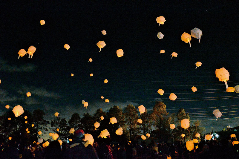 夜空に願いを…ランタン150基舞い上がる 川島で町制50周年記念イベント「大切な人と思い出を」