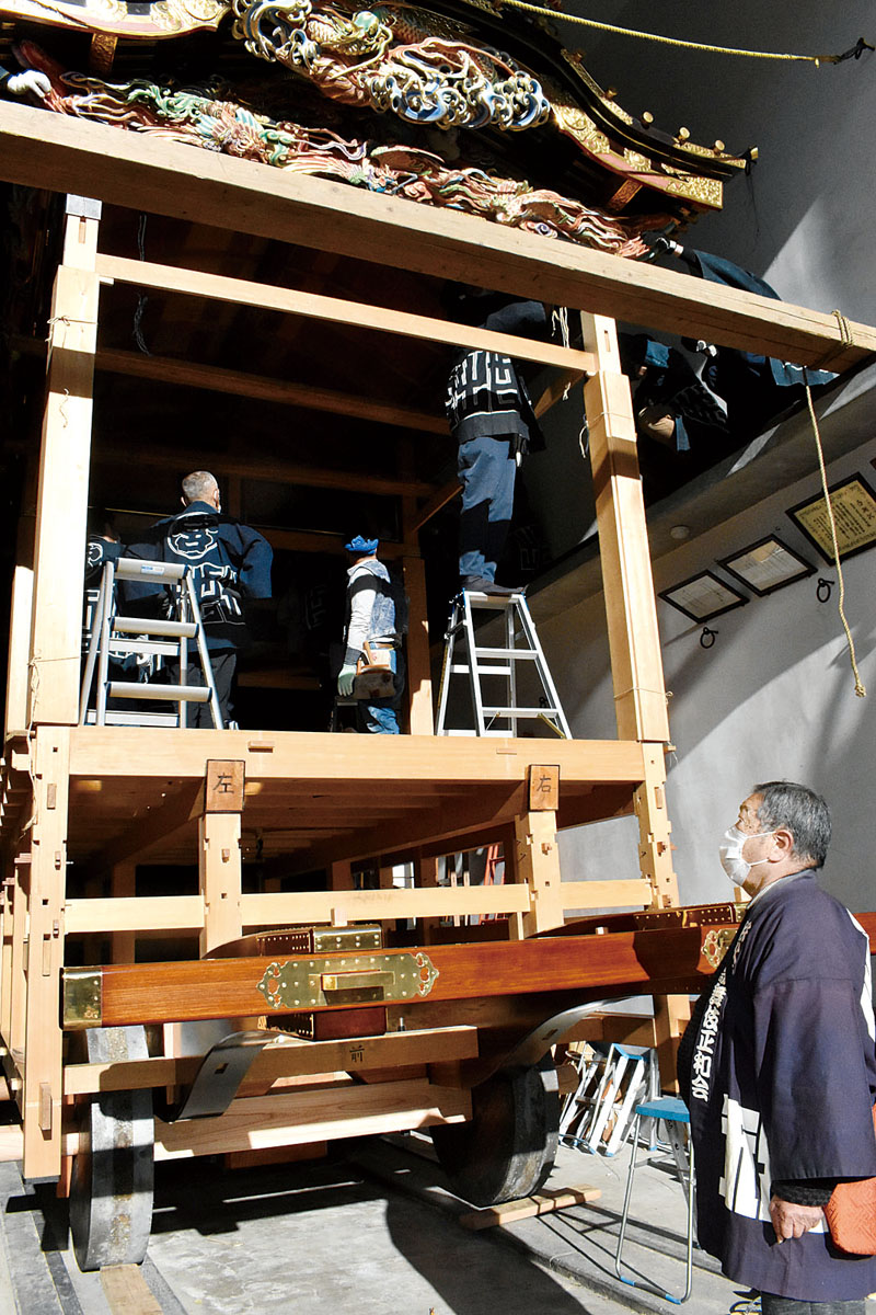 秩父神社の例大祭「秩父夜祭」(ユネスコ無形文化遺産)が2、3日、秩父市中心部で行われる。今年は山車の曳(ひ)き回しと共に、屋台両袖に舞台を特設しての地芝居(秩父歌舞伎)も3年ぶりに復活する。秩父歌舞伎正和会は、演目「菅原伝授手習鑑 三段目吉田社頭車引之場」を、今年の当番町となる宮地の屋台で2日間にわたり上演。同会の坂本益義会長(73)は「夜祭の舞台は自分たちの活動の原点。各屋台町会の協力で伝統が維持できていることに感謝し、今回はわれわれの十八番(おはこ)の演目で会場を魅了したい」と力を込める。