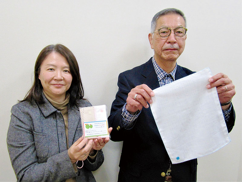 NPOさいたま市障害難病団体協議会(さいたま市北区、米山文雄代表理事)は、国から配布される布製マスクをガーゼハンカチにリメークした。同NPOが運営する福祉施設の利用者が手作業で仕上げた。