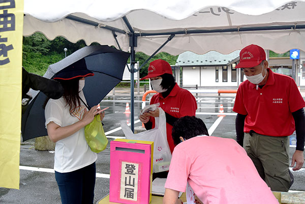 4連休の初日となった23日、秩父署は横瀬町芦ケ久保の道の駅果樹公園あしがくぼで、「夏季における交通事故および山岳事故防止キャンペーン~山も道路も安全秩父路~」を実施した。夏の行楽シーズンに合わせて、同道の駅を訪れた運転手や登山客に啓発品を配布し、交通事故や山岳事故の防止を呼び掛けた。