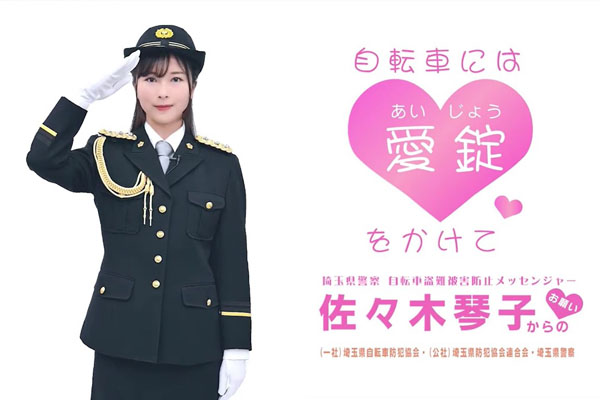 刑法犯認知件数の約25%を占める自転車盗難被害を防止しようと、埼玉県警は元乃木坂46で声優の佐々木琴子さん(22)を自転車盗難被害防止メッセンジャーに委嘱し、佐々木さんを起用した啓発ポスターと動画を制作した。