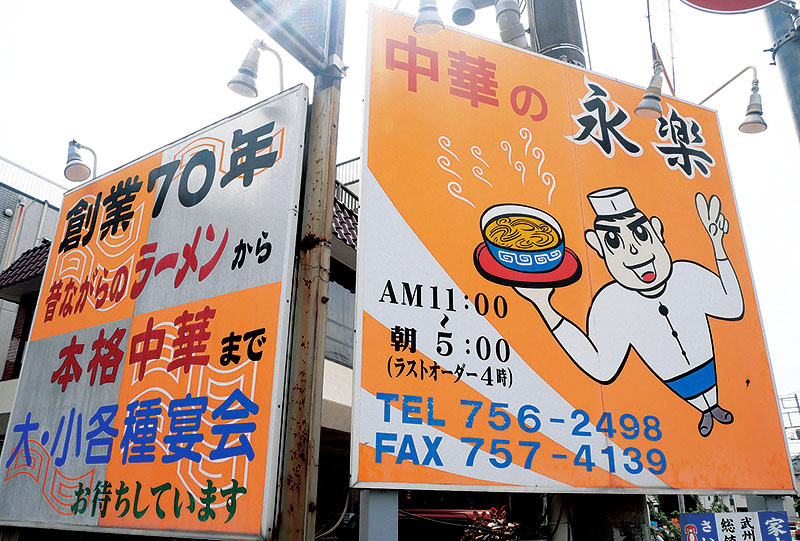 岩槻駅西口近くの交差点に立つ存在感ある看板が目印の「中華の永楽」。「創業70年」とあるが、当初から数えれば今年で94年を迎える。地元人気の老舗で、洋食屋時代の名残を伝える名物のイカフライやオムライスに加え、近年は中華の塩焼きそばに伝統野菜の岩槻ネギを使ったメニューも提供(冬場のみ)。市外からも大勢のファンが訪れる。