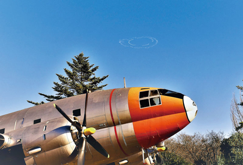 県内の上空で飛行機雲がニコちゃんマーク(直径約1キロ)を描くプロジェクト「Fly for ALL #大空を見上げよう in 埼玉」が23日正午から午後1時にかけて行われ、大宮や川越、所沢など県内11カ所の上空にニコちゃんマークが出現した。