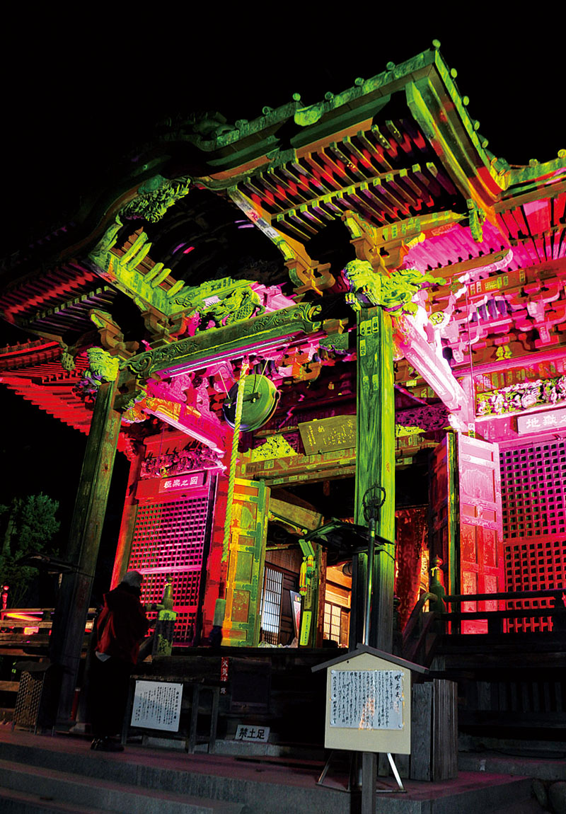 初詣客を出迎えるライトアップ、31日夜から文化財の寺で 輝く観音堂、荘厳な光に包まれ、よみがえる