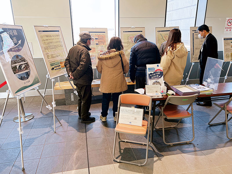 さいたま市は、地下鉄7号線(埼玉高速鉄道線=SR)延伸計画案とSR浦和美園駅と東武岩槻駅の中間駅まちづくり方針案について、市民説明会を開始した。20日は岩槻駅構内の自由通路にパネルを設置し、リーフレットを配布。市職員が市民に概要を説明して、質問に回答していた。