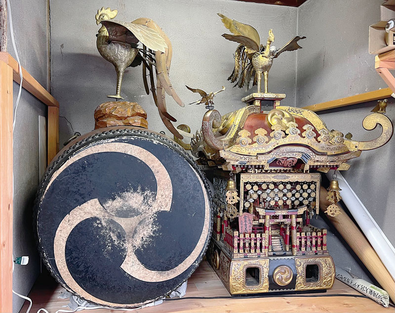 同校の創立は1947(昭和22)年3月。創立40周年当時のPTA役員らが、資料として道具類を集めて学校で展示することを企画した。地域に手紙を送り、住民らが所有する生活用具などを学校に持ち寄ったという。大正や昭和時代に使用されていたとみられるてんびん量り、太鼓、オルガン、湯たんぽ、ランプ、小物入れ、時計、空気を送るふいご、大釜、おひつなどが、校内の理科準備室など複数箇所に保管されている。市立博物館に相談して、道具類の整理を進め、引き取り手を探している。お神輿(みこし)は地元自治会の受け入れが決まった。