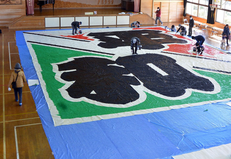 特大の「世界平和」を…大凧あげ祭り向け、春日部で文字書き 世相反映の2枚、五月晴れの空に舞うか