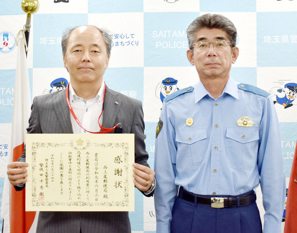 女性の様子から疑う「200万円引き出したい」 郵便局員が通報、詐欺から女性守る 上尾署が感謝状 2019/06/28/00:00 田中秀樹署長(右)から感謝状を贈られた小沢拓也さん この写真の記事に戻る