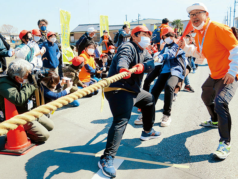 創立150周年を迎える埼玉県加須市立北川辺東小学校(内河大和校長、児童数188人)と同西小学校(二階堂朝光校長、児童数180人)が4日、市道を通行止めにして東西対抗綱引き大会を行った。接戦の末、東小が優勝した。