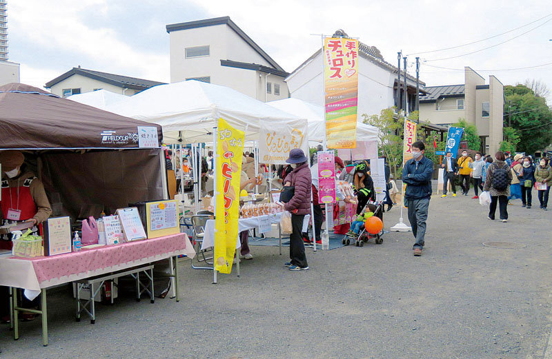 越谷市の旧日光街道沿い商店など約20カ所にひな人形を展示する「越ケ谷宿の雛(ひな)めぐり」最終日となる5日、マルシェやワークショップなどを楽しむ催し「宿場のまちあそび」が開催された。