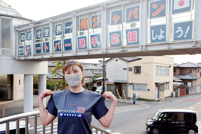 9日夕、応援メッセージを撮影していた女性は久美子さんの同級生で、中高校時代のソフト部の仲間だった金子清美さん(57)。「応援メッセージが出ていると聞いたので、久美子に送ろうと思って」。代表に決まってから久美子さんと相談し、高校のソフト仲間でおそろいのTシャツを製作。カージナルスファンのヌートバー選手への声援の言葉「ぬうううううう」を入れ、デザイン。「ぜひ活躍してほしいですね」と期待を込めた。