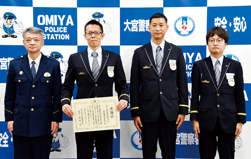 大宮駅で英断 刃物男いる新幹線…JR急いで予定変更、無人ホームへ誘導し、混雑なく即逮捕 けが人なく称賛 2023/03/20/10:30 愛敬進大宮署長(左)から代表で感謝状を受け取ったJR東日本新幹線統括本部新幹線総合指令所の大野木正樹旅客指令長(中央左)ら=17日午前11時37分ごろ、大宮署 この写真の記事に戻る