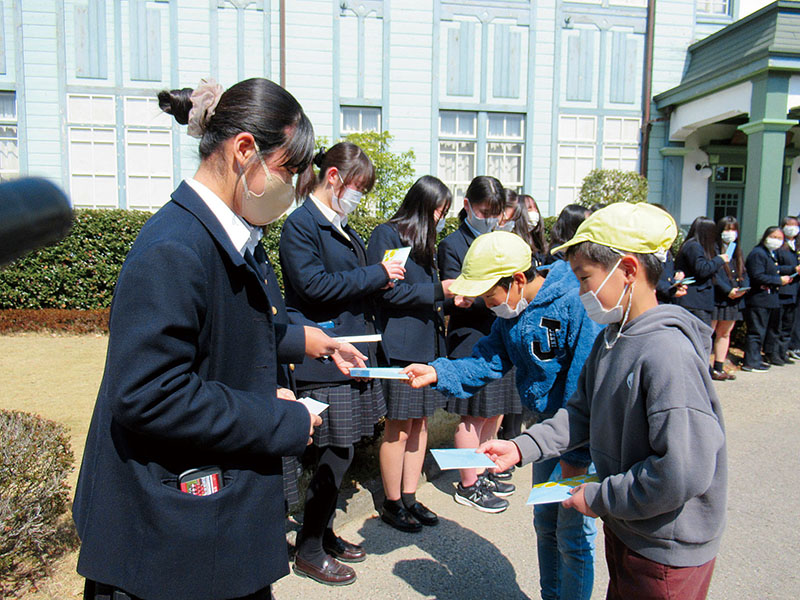 2021年のNHK大河ドラマ「青天を衝け」のロケ地で栽培した藍の種を育てている埼玉県深谷市立常盤小学校(柴崎千穂校長、児童数677人)4年生101人が、学区内にある県立高校2校と幼稚園に孫の種をプレゼントした。