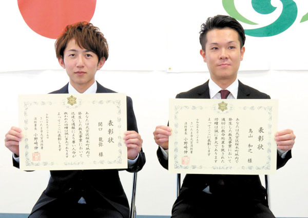 ステーキ肉を喉に詰まらせた男性に対して適切な応急処置を行ったとして、さいたま市大宮消防署は25日、男性2人に感謝状を贈呈した。2人は「瞬時の判断で命を救えて良かった」と話している。