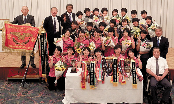 8月に行われた全国高校総合体育大会(インターハイ)・南部九州総体の女子ソフトテニス団体で、初優勝を飾った埼玉平成高校(毛呂山町・杉木貴喜校長)の女子ソフトテニス部優勝祝賀会が、坂戸市内のホテルで開かれ、選手をはじめ、教職員や保護者ら約100人が全国優勝の快挙を祝い、選手らの功績をたたえた。